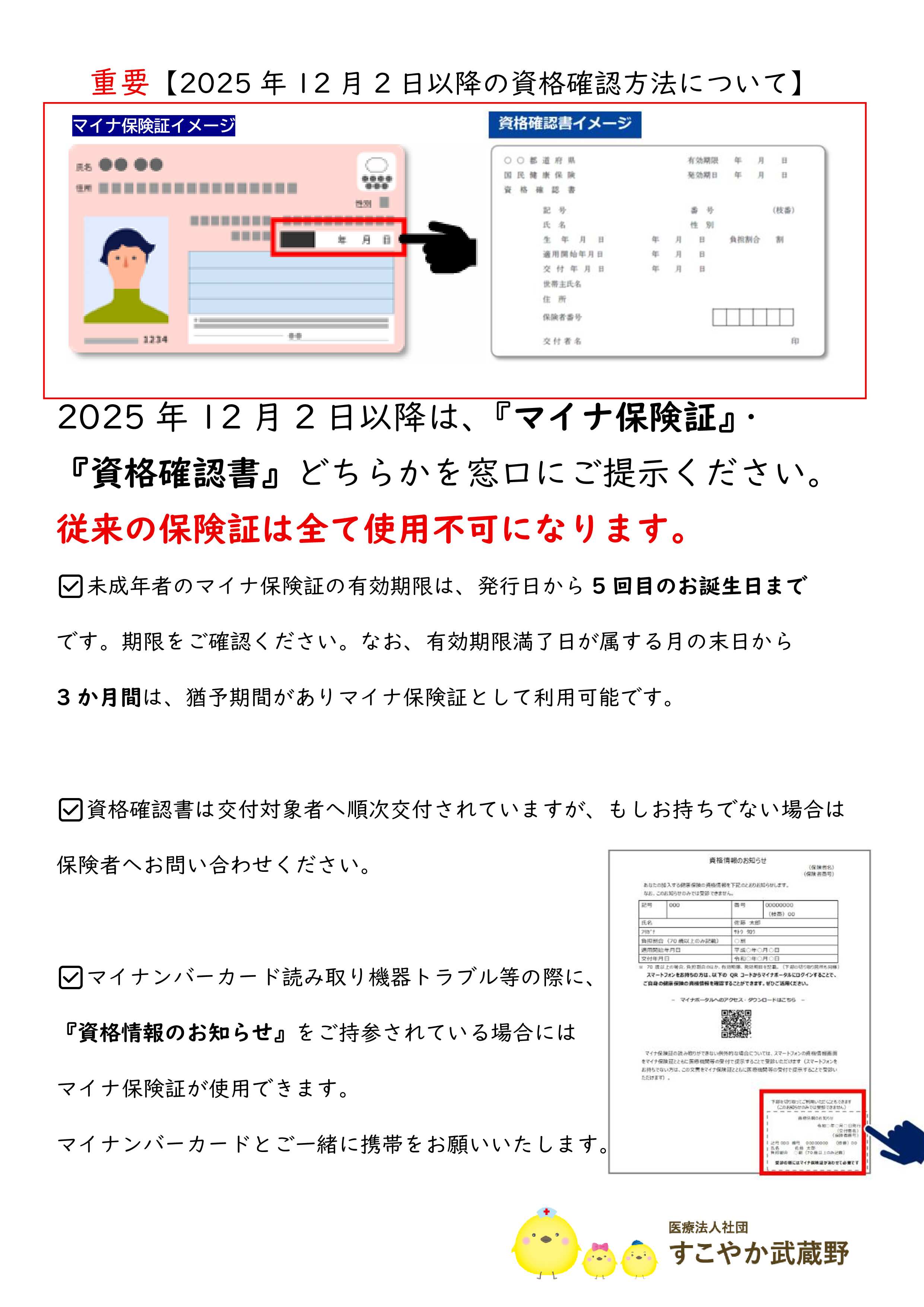 - 【重要】2025年12月2日以降の保険資格確認方法について